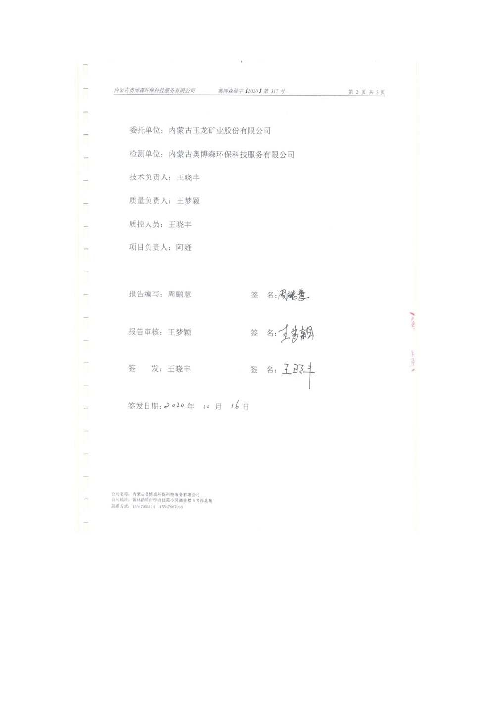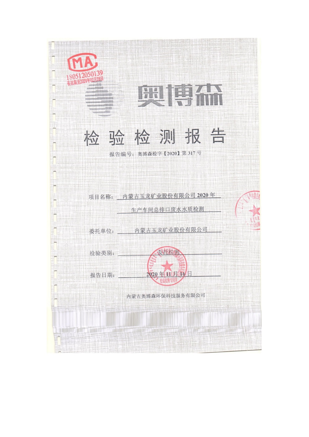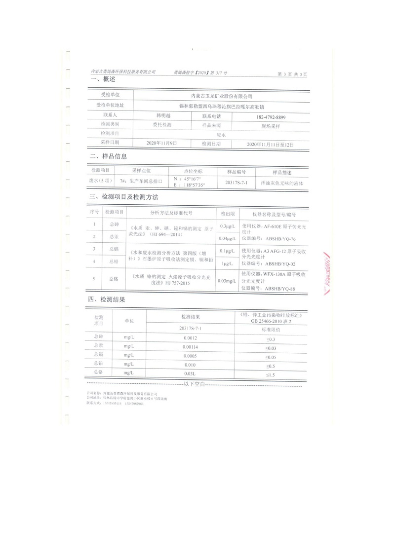 2020年11月份車間總排放口檢測(cè)報(bào)告