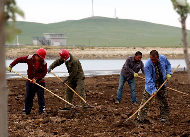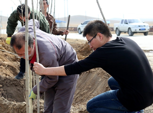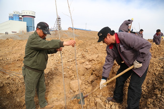公司上下齊動員,全員參與到礦山的綠化美化,截止5月25日,參加人員累計達到1500人次,共種植楊樹5100棵、丁香樹900珠、松樹600棵、種植苜蓿草籽646斤、沙打旺草籽578斤、油葵籽20斤、油菜花籽50斤,種植面積累計約160畝;動用鉤機、鏟車、灑水車、翻斗車、等工程機械847多臺次,覆土方量34114.66立方米、倒運廢石73188.7噸,硬化路面2000平方米。